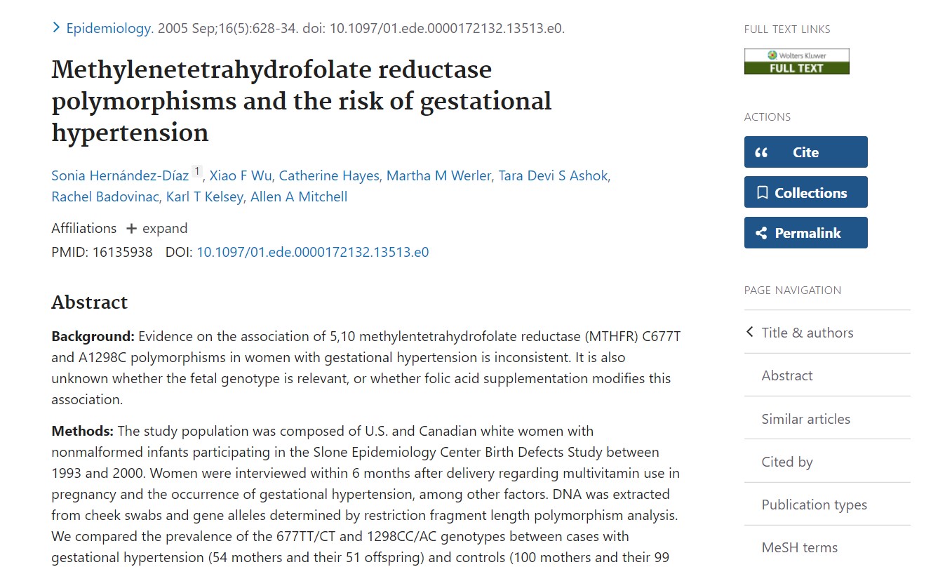 Hayes C, et al.Methylentetrahydrofolat-reduktase-polymorfismer og