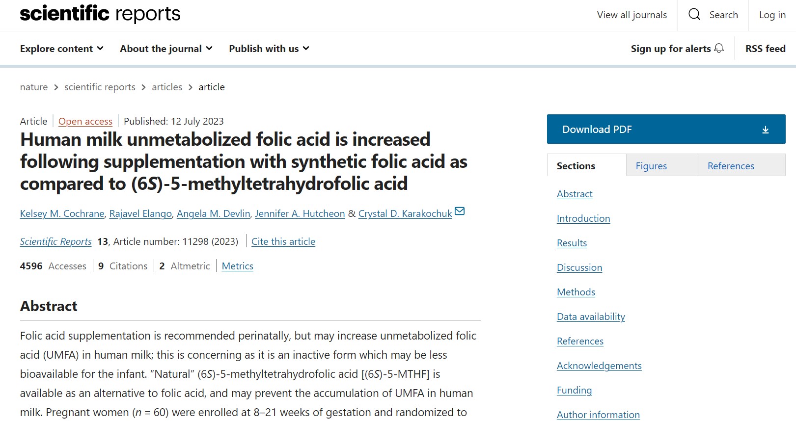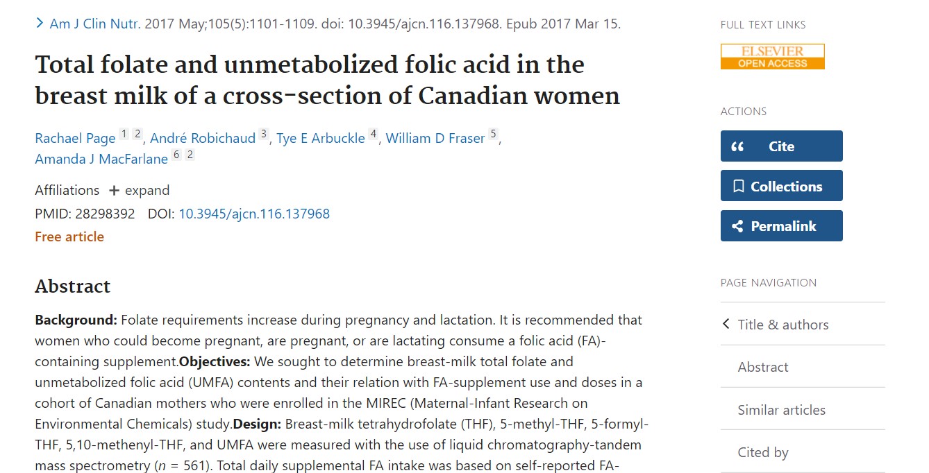 Side R et al. Total folat og umetaboliseret folinsyre i modermælk fra canadiske kvinder. Am J Clin Nutr 2017;105:1101-9.