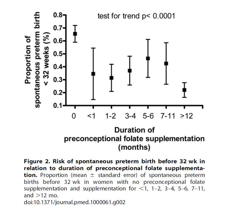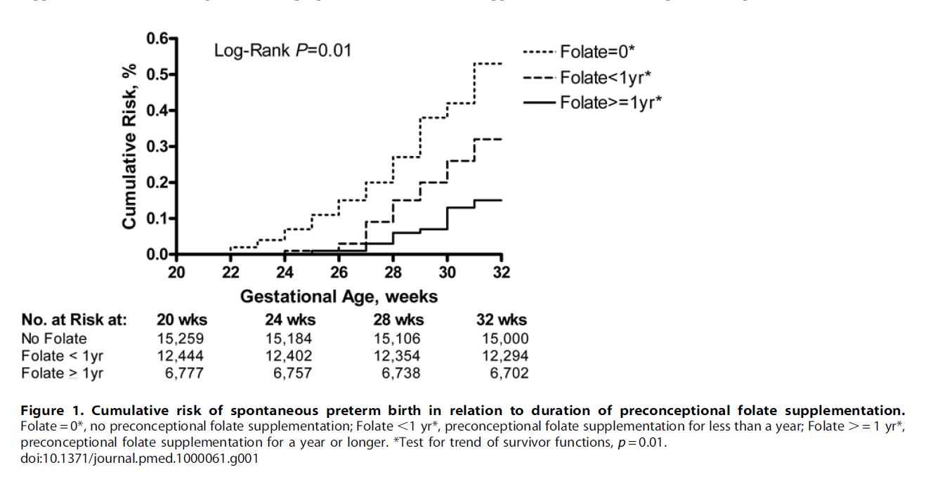 Folat forhindrer kun "spontan præmature fødsel”. Det er ineffektivt til "indikeret for tidlig fødsel" forårsaget af præeklampsi, placentaabruption eller fostermisdannelser. Regelmæssig prænatal kontrol, kontrol af blodtryk og blodsukker, og forebyggelse af infektioner er mere vigtigt.