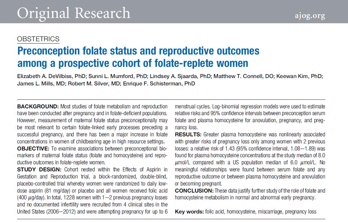 Forskere fulgte prospektivt 1.228 kvinder med en historie på en eller to tidligere aborter, som konsekvent supplerede med 400 µg folinsyre syre dagligt. Resultaterne afslørede: