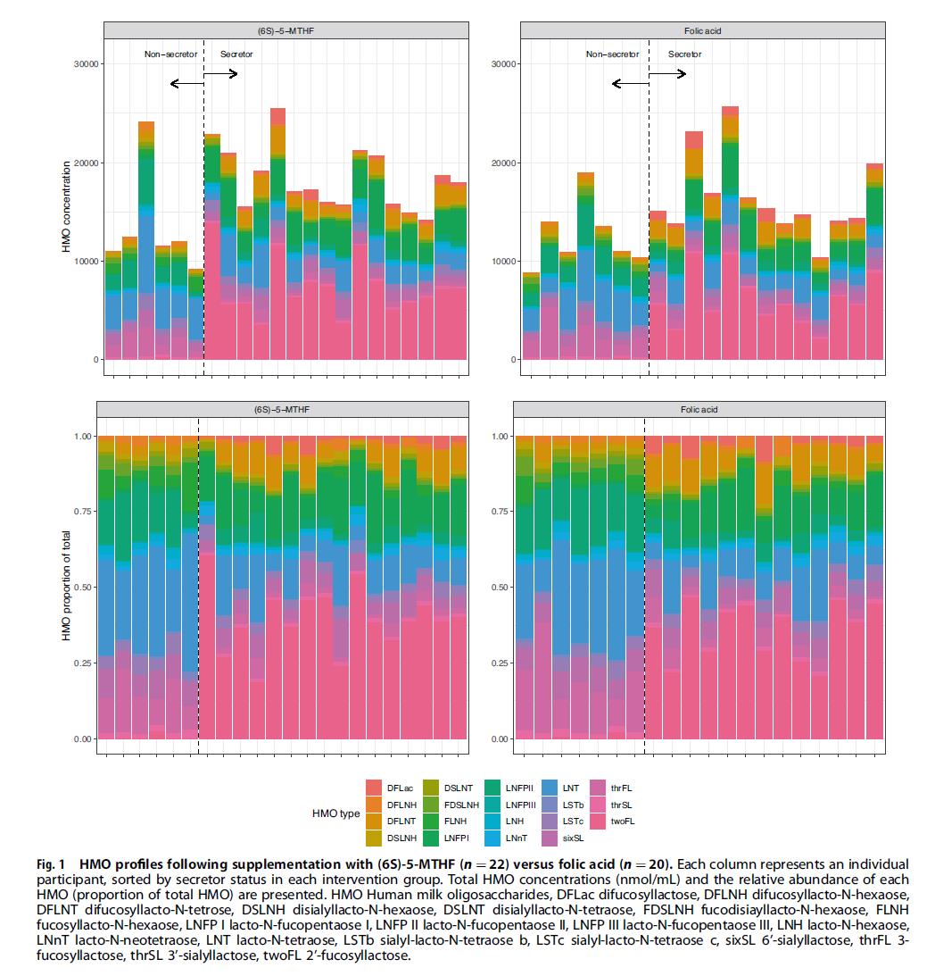 Efter 16 ugers tilskud, nogle deltagere fortsatte indtil en uge efter fødslen. På det tidspunkt samlede forskere deres modermælk og analyserede både folatformer og 19 modermælk oligosaccharider (HMO'er).